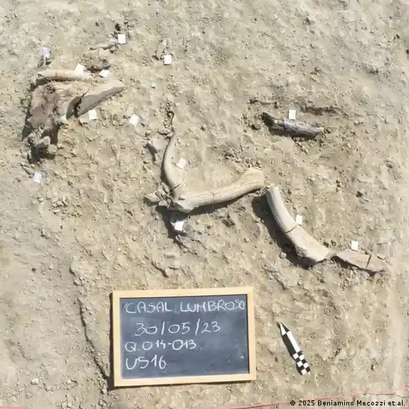 En este nuevo análisis, Mecozzi y sus colegas examinaron los restos de un elefante hallado en el yacimiento de Casal Lumbroso, en el noroeste de Roma. Al comparar las capas de ceniza circundantes, determinaron que los restos datan de hace aproximadamente 404.000 años, correspondientes a una fase especialmente cálida del Pleistoceno Medio.
