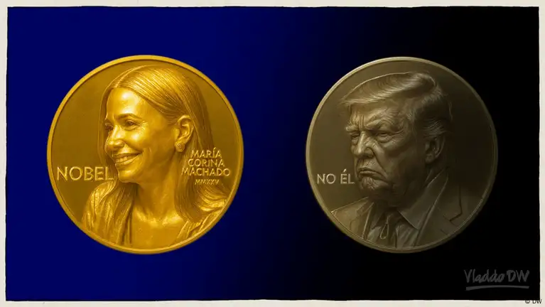 PolíticaVenezuelaLa figura de la pazVladdo10/10/202510 de octubre de 2025Un vistazo a la actualidad en la pluma de Vladdo.Copiar enlaceCaricatura de Vladdo: "La figura de la paz".Imagen: DWPublicidad