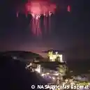 Durante una tormenta en la comuna de Beynac-et-Cazenac, Francia, justo sobre el castillo medieval de Beynac, apareció en el cielo un destello rojo y vertical con formas ramificadas que recordaban a los tentáculos de una medusa.
