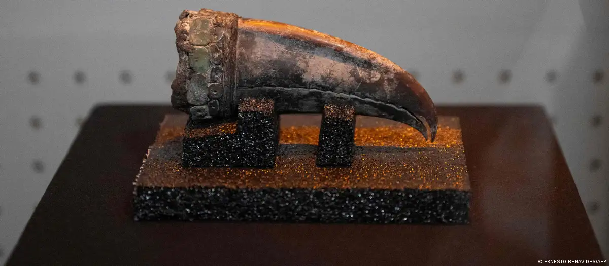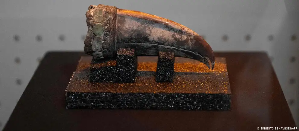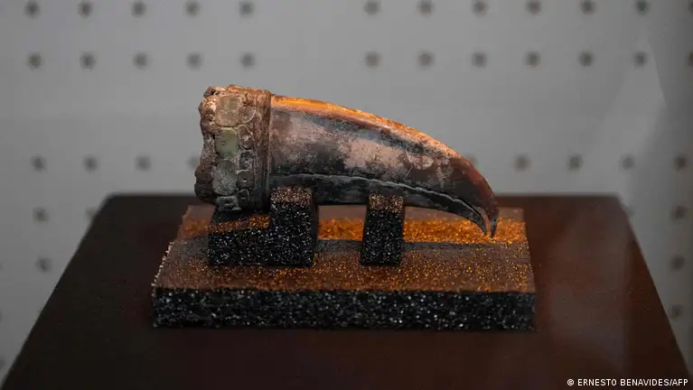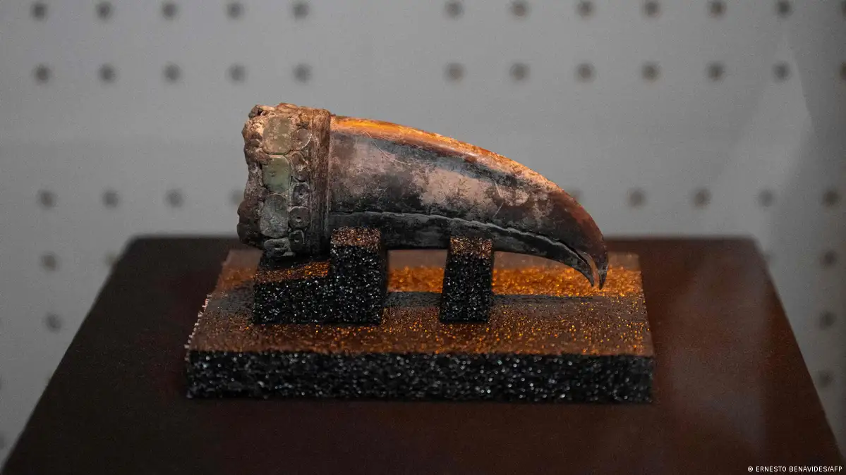 Junto a la mujer se encontró un ajuar funerario de pequeños objetos, como un pico de tucán, un cuenco de piedra y una cesta de paja que se exhibieron en la sede del ministerio de Cultura en Lima.