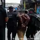 Otros detenidos avanzaban juntos con los brazos esposados detrás.