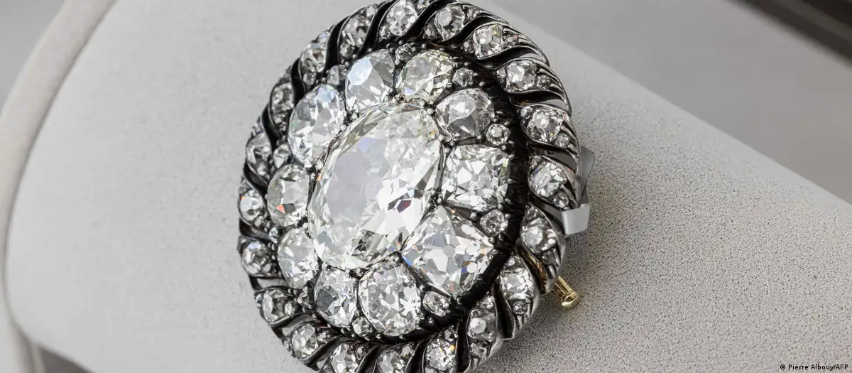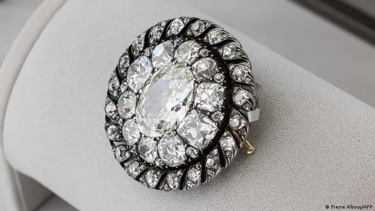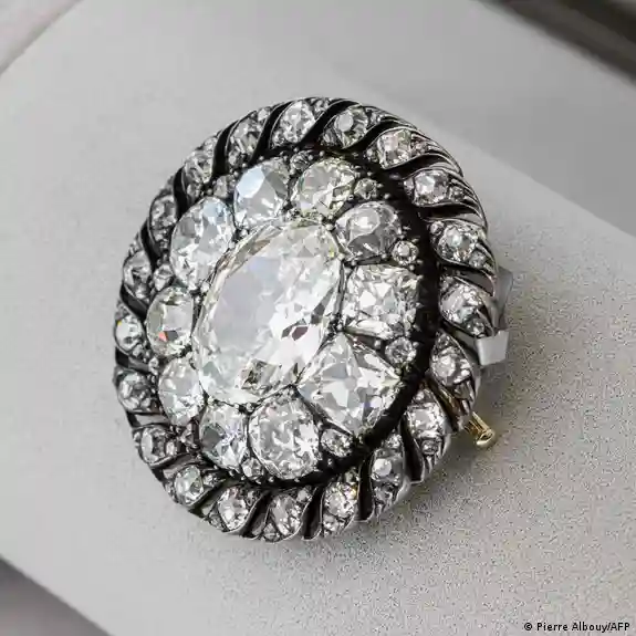 El broche circular, confeccionado para Napoleón en 1810, tiene un diámetro de unos 45 milímetros. En su centro luce un diamante de 13,04 quilates rodeado por casi un centenar de diamantes más pequeños.