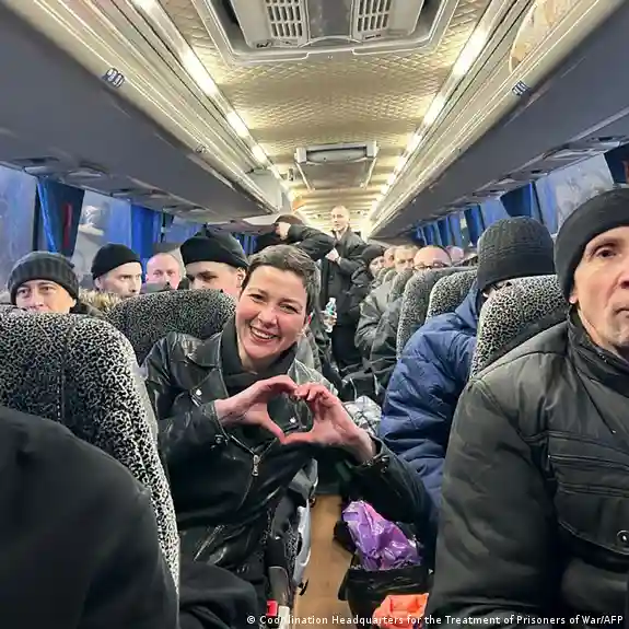 Entre los liberados llegados a Ucrania hay cinco ucranianos que estaban en prisión acusados de espionaje y figuras públicas y políticas bielorrusas como Kolésnikova, Babáriko y la periodista Marina Zolótova, además de otras personas.