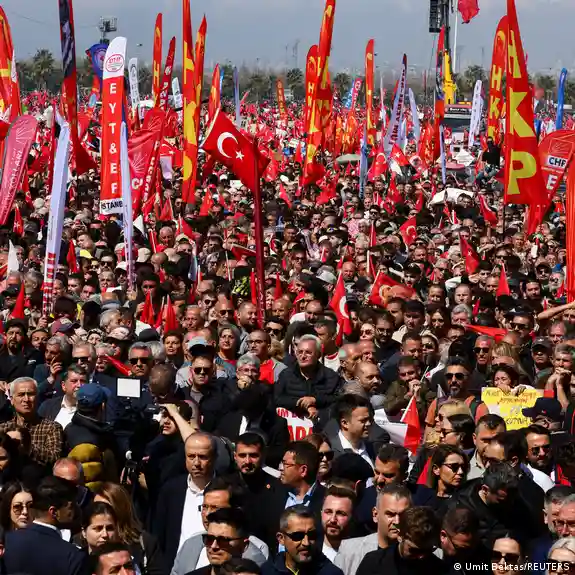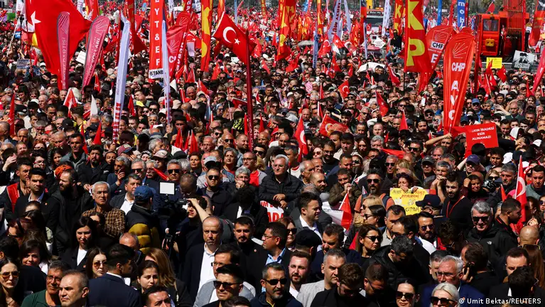 دهها هزار نفر از معترضان در استانبول روز شنبه ۲۹ مارس (۹ فروردین) به خیابانها آمدند تا به بازداشت اکرم اماماوغلو، شهردار استانبول و چهره برجسته حزب جمهوریخواه خلق (CHP)، اعتراض کنند.