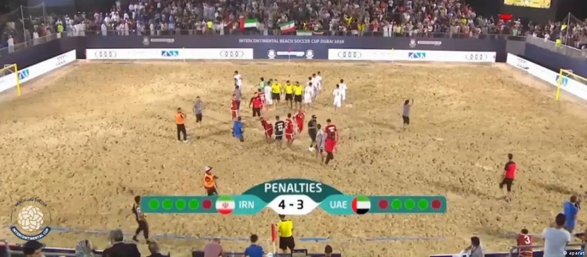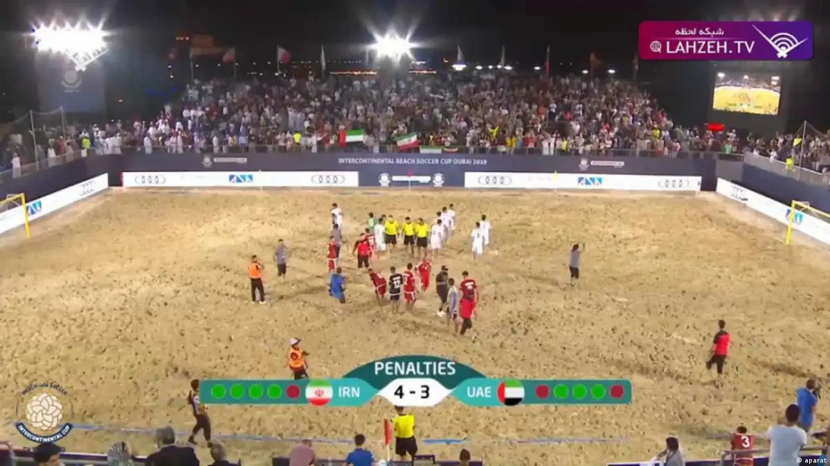 این روزنامه نوشته چهاردهم آبان پس از پایان مسابقه عدهای از تماشاگران در بیرون ورزشگاه فوتبال ساحلی شهر دوبی "تجمع کردند و شعارهای ساختار شکنانه علیه نظام جمهوری اسلامی سر دادند".