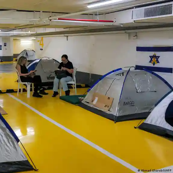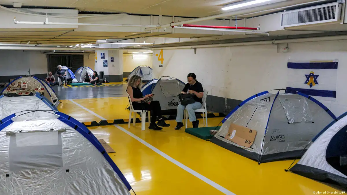 بتینا مایر، خبرنگار شبکه یک تلویزیون آلمان که ناظر و شاهد زندگی اسرائیلیها در پارکینگی در تلآویو بوده در گزارشی مینویسد در طبقه چهارم زیرزمین یک مرکز خرید، کودکی در کنار چادر زرد رنگ خانوادهاش توپ بازی میکند. از سقف کابلهایی آویزان شدهاند که فن و لپتاپ پدر خانواده، ایال برمان، را شارژ میکنند.