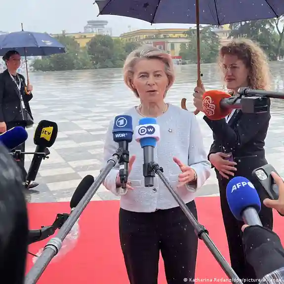فوندرلاین همچنین به حمایت کشورهای اروپایی از تحریمها علیه روسیه اشاره کرد و گفت: «بیشتر اعضای اتحادیه اروپا از تحریمهای روسیه حمایت کردند.»