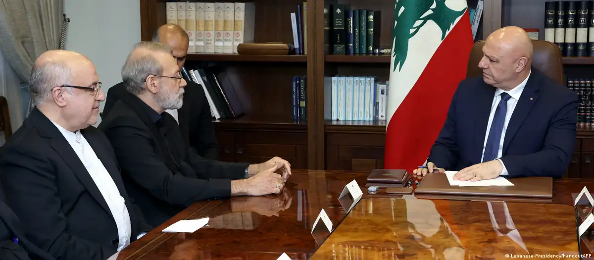 عون روز چهارشنبه در دیدار با لاریجانی گفت: «هرگونه دخالت در امور داخلی خود را رد میکنیم» و افزود: «هیچکس حق ندارد سلاح در اختیار داشته باشد و از حمایت خارجی به عنوان اهرم فشار استفاده کند.»