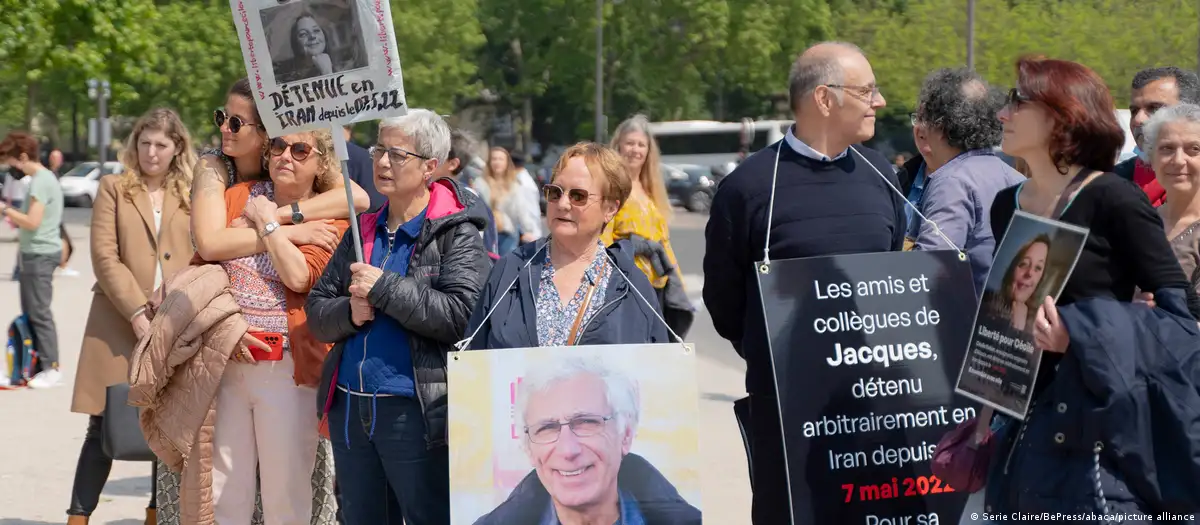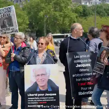 عکس دو فرانسوی زندانی در ایران در دست تظاهرکنندگان در پاریس (عکس از آرشیو)عکس: Serie Claire/BePress/abaca/picture alliance