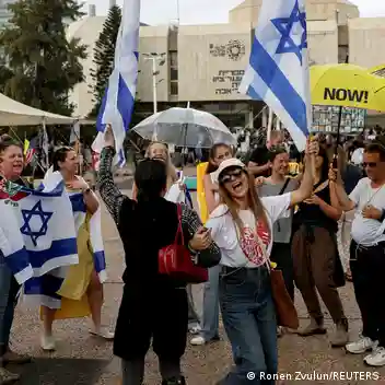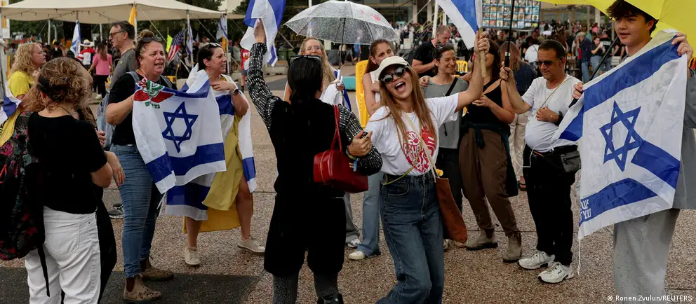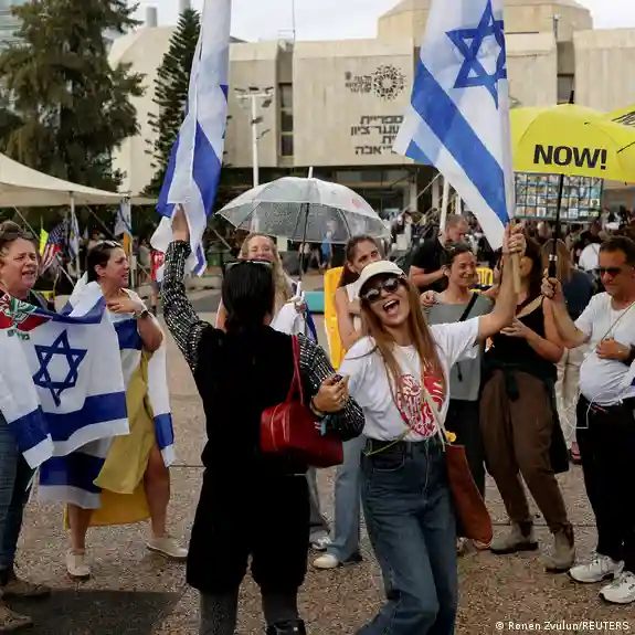 خانوادههای اسرائیلیهایی که در غزه به گروگان گرفته شدهاند، پس از اعلام توافق، در میدان معروف به "میدان گروگانها" در تلآویو گردهم آمدند.