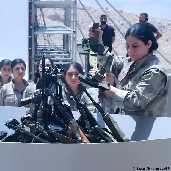 گروهی از نیروهای حزب کارگران کردستان (پکک) روز جمعه بیستم تیر (۱۱ ژوئیه) در شمال عراق در اقدامی نمادین در مراسمی سلاحهای خود را تحویل دادند.
