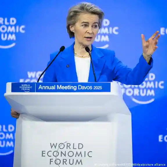 اورزولا فون در لاین، رئیس کمیسیون اتحادیه اروپا، در نشست سالانه مجمع جهانی اقتصاد در داووس سوئیس، به دونالد ترامپ، رئیسجمهور جدید ایالات متحده، درباره پیامدهای احتمالی جنگ تجاری با اروپا هشدار داد. او با اشاره به روابط عمیق اقتصادی میان دو طرف گفت: «هیچ اقتصاد دیگری در جهان بهاندازه اروپا و آمریکا به یکدیگر وابسته نیستند.»