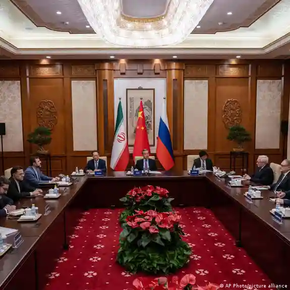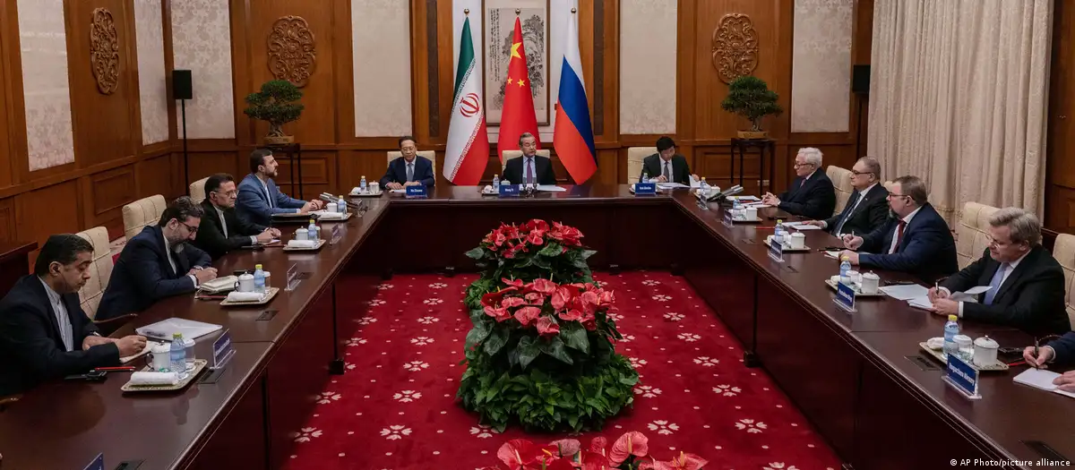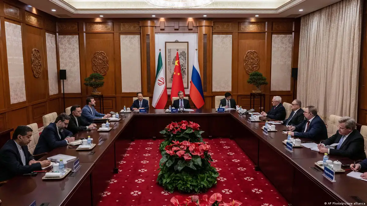 نشست هیئتهای نمایندگی چین، روسیه و جمهوری اسلامی روز جمعه ۲۴ اسفند (۱۴ مارس) در پکن برگزار شد. موضوع نشست برنامه هستهای ایران بود.