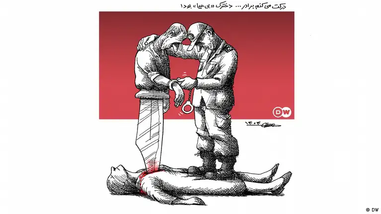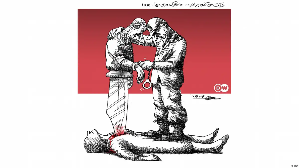 انتشار مصاحبه متهم به قتل الهه حسیننژاد و تاکید او بر "بیحیا" بودن مقتول، اذهان مخاطبان را به سمت تشابه کلام و استدلال این فرد با ادبیات بخشهایی از هسته مرکزی جمهوری اسلامی سوق داده است که وظیفه قانونگذاری و اجرای آن را بر عهده دارد. تنها سه سال از قتل ژینا مهسا امینی که به آغاز خیزش سراسری "زن، زندگی، آزادی" انجامید، میگذرد. صدها کودک، زن و مرد با اتهام تلاش برای "ترویج بیبندوباری و بیحیایی" توسط حکومت و نیروهای وابسته به آن کشته، مجروح و یا نابینا شدند. شاید عجیب نباشد که حالا متهم به قتل یک دختر جوان سعی میکند تا با استفاده از دایره لغات و استدلالهای محبوب یک حکومت سرکوبگر، به شکلی، از صاحبان قدرت همدلی بخرد و جنایت تکاندهنده خود را توجیه کند. این موضوع دستمایه مانا نیستانی در طراحی کاریکاتور هفته برای دویچه وله فارسی بوده است.