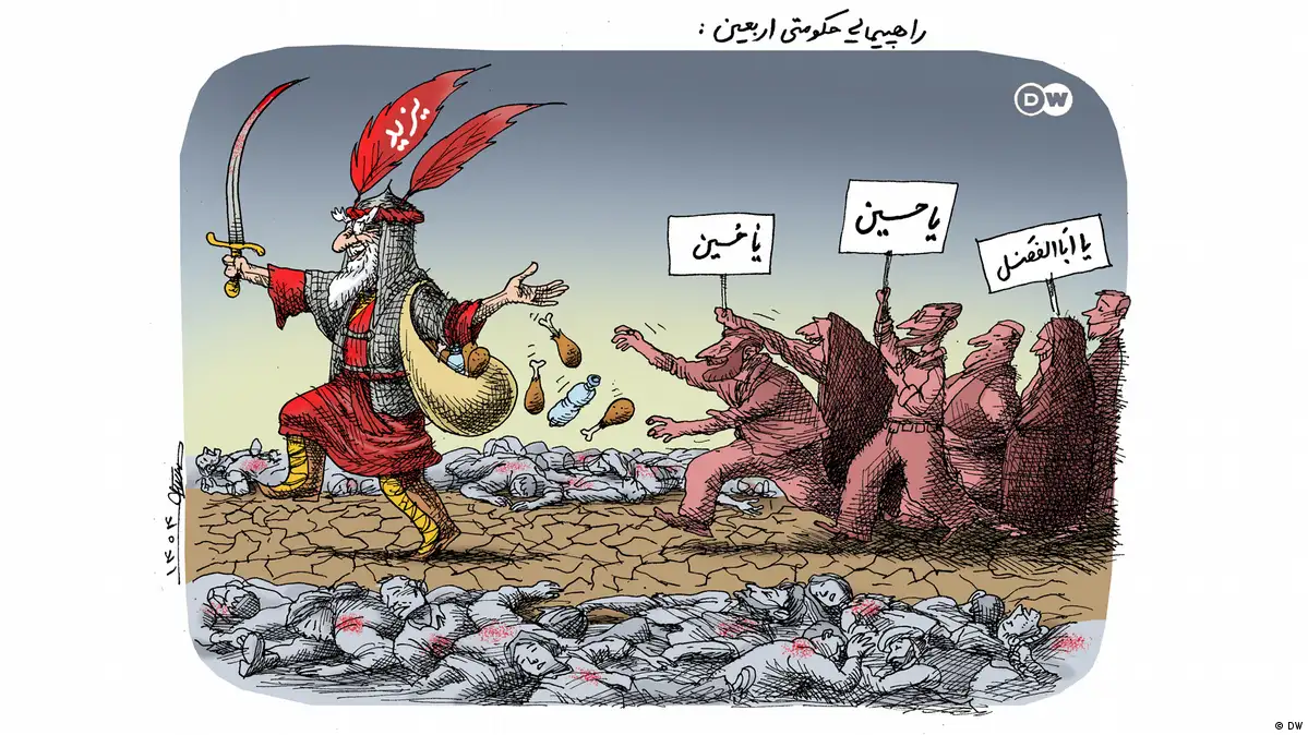 بنا بر گزارشها، میلیاردها تومان خرج خوراک و رفاه زائرانی شده که قرار است در مراسم راهپیمایی حکومتی اربعین شرکت کنند. حکومتیکردن آیینهای مذهبی و دینی به منظور بهرهبرداری سیاسی همواره مورد انتقاد مخالفان و منتقدان نظام بوده است. منتتقدان میگویند، در شرایطی که اکثریت مردم ایران به خاطر کمآبی، بیبرقی، گرانی و تورم وحشتناک و سایر مشکلات در رنج و بعضا درگیر مرگی تدریجیاند و انتقاد و اعتراض هم با تعقیب و سرکوب روبرو میشود، پول ملت صرف مراسمی میشود که حتی طبق قوانین جمهوری اسلامی هم جزو تعهدات و وظایف حکومت نیست. این موضوع دستمایه مانا نیستانی برای کاریکاتور هفته بوده است.
