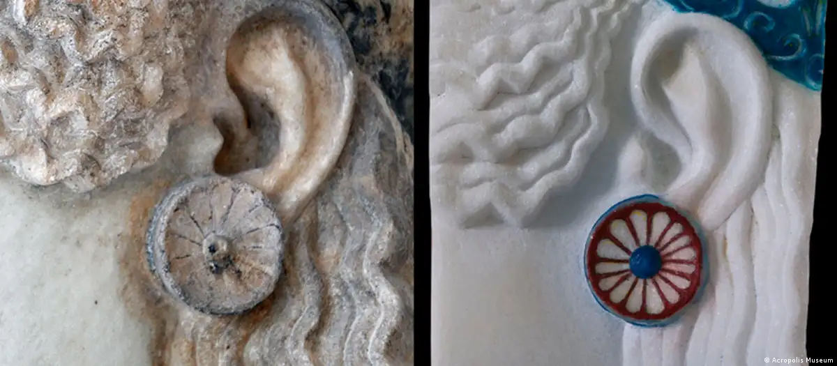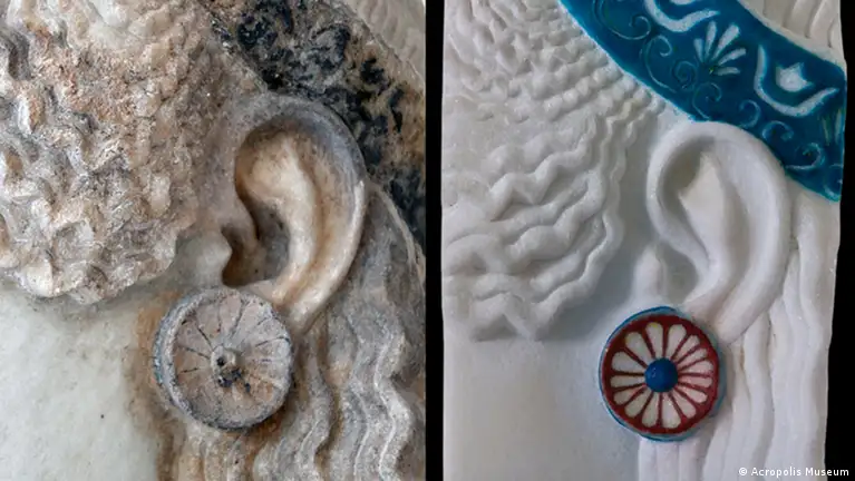म्यूजियम के अनुसार, "ग्रीक देवताओं, योद्धाओं और खिलाड़ियों के सुनहरे बाल, ताकत का संकेत माने जाते थे. दूसरी ओर ग्रे त्वचा बहादुरी और हिम्मत का प्रतीक थी और युवा लड़कियों की सफेद त्वचा उनके तेज और निखार को दिखाने के लिए इस्तेमाल की जाती थी.”