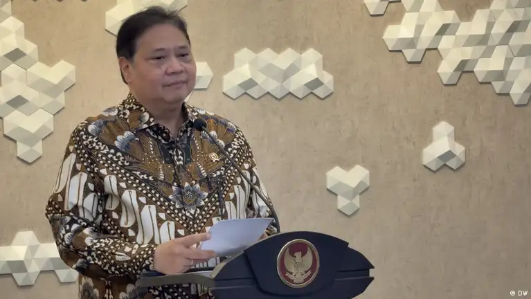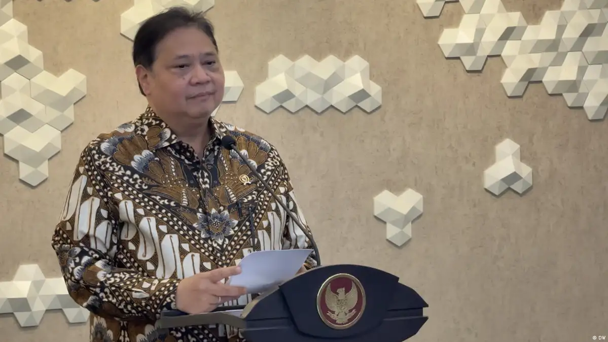 Menteri Koordinator Bidang Perekonomian, Airlangga Hartarto, saat memberi penjelasan mengenai Pernyataan Bersama Indonesia-Amerika Serikat dalam konferensi pers di Jakarta, Kamis (24/7)Foto: DW