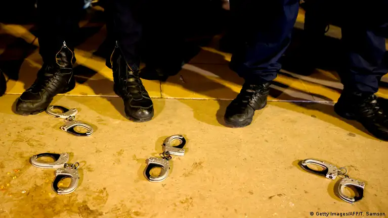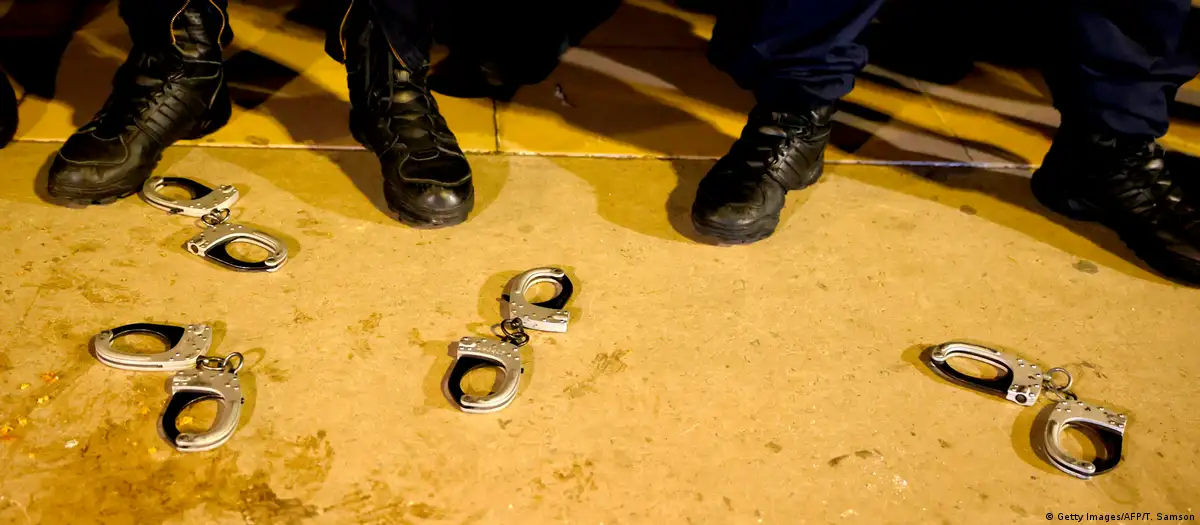 Некои полицајци ги фрлаа лисиците на земја во знак на протест против плановите на министерот за внатрешни работи Кристоф Кастанер за реформа на полицијата.
