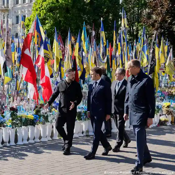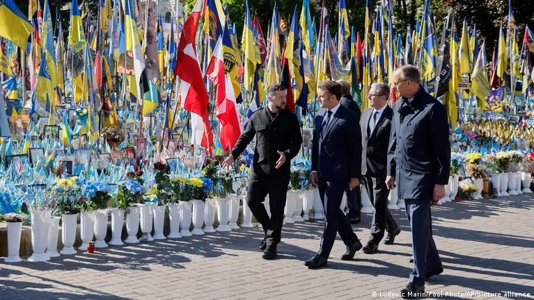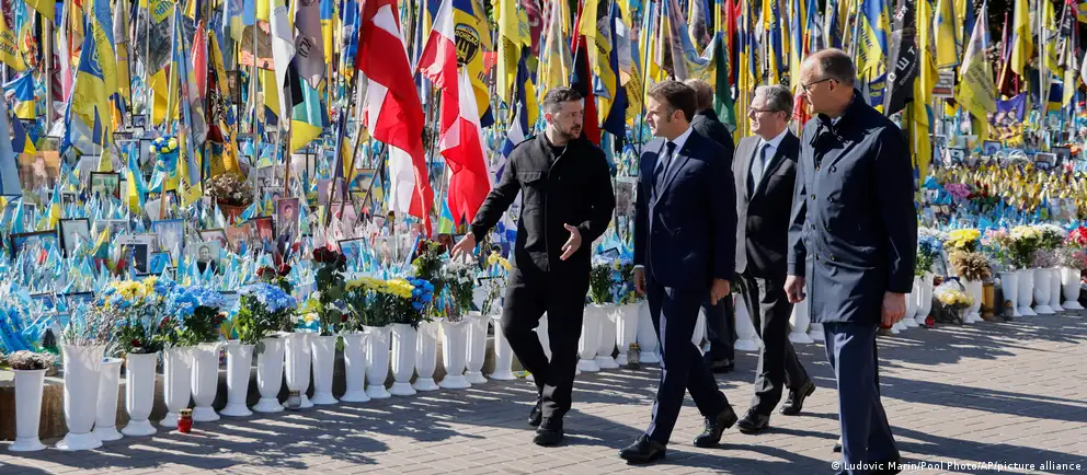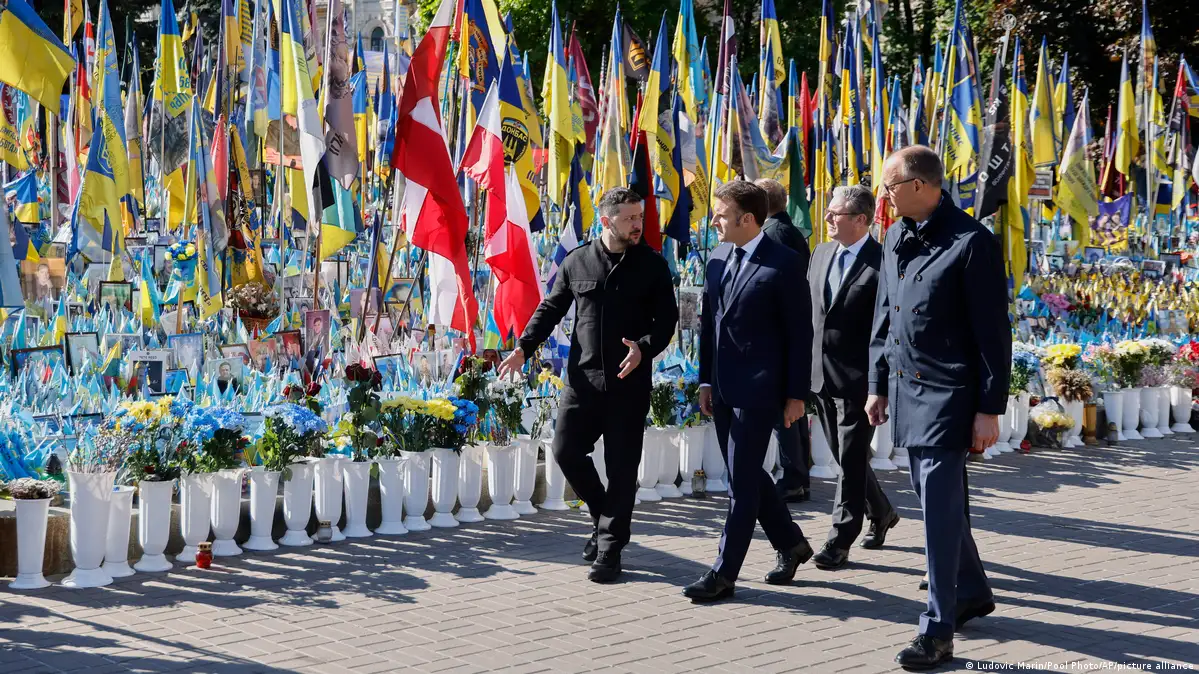 За време на посетата на Киев, германскиот канцелар Фридрих Мерц, францускиот претседател Емануел Макрон, полскиот премиер Доналд Туск и британскиот премиер Кир Стармер им оддадоа почит на жртвите од руската агресорска војна против Украина.