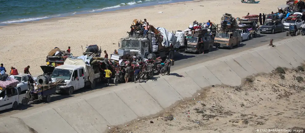 اسرائیل د اگست په میاشت کې اعلان وکړ چې پوځ به ټول ښار ونیسي ترڅو هلته د حماس شکمن واحدونه وځپي. د اسرائیل پوځ له همدې څه موده مخکې د غزې د ښار له ټولو اوسیدونکو څخه وغوښتل چې جنوب پلو، په اصطلاح «بشري ساحو» ته وتښتي. پوځ د یوې پوښتنې په جواب کې ویلي چې په دې ترڅ کې څه د پاسه ۳۰۰ زره فلسطینیانو دغه ښار پرې ایښی دی. مخکې له دې هلته شاوخوا یو میلیون انسانان استوگن ول. د غزې په تراډه کې د حماس تر کنترول لاندې د رسنیو دفتر تر اوسه له دې ځایه د کډه کيدونکو کسانو شمیر ۳۵۰ زره اټکل کړی دی.