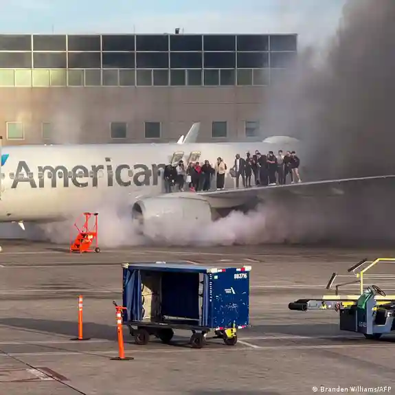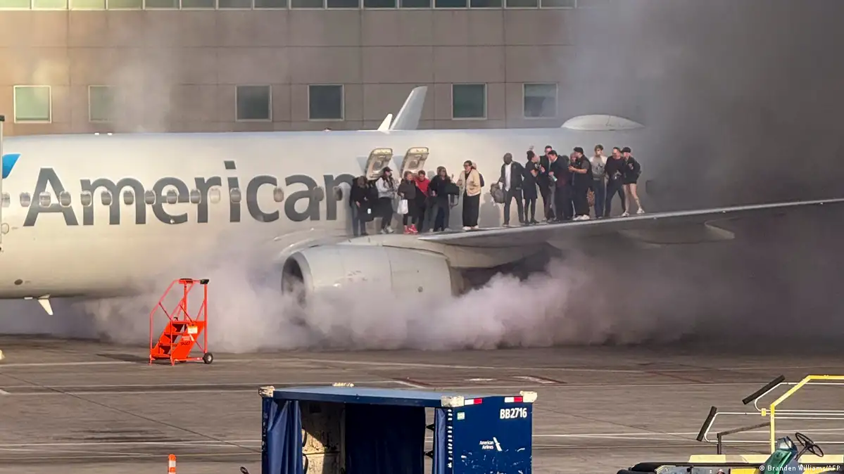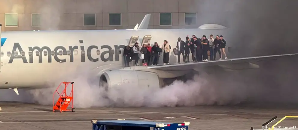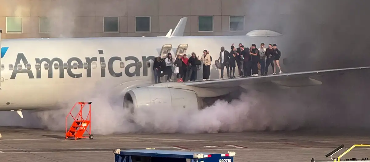 پر ټولنیزو رسنیو د پېښې انځورونه خپاره شوي چې ښيي د الوتکې له اطرافو غلیظ لوګی پورته کيږي په داسې حال کې چې له الوتکې راوتلې یو شمېر مساپر د الوتکې پر یوه وزر ولاړ دي او ژغورنکې ساحې ته ځانونه رسوي.