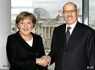 Após um encontro com a chanceler federal Angela Merkel e o ministro alemão das Relações Exteriores, Frank-Walter Steinmeier, na capital alemã, El Baradei sugeriu a Teerã que diminua o enriquecimento de urânio ou mesmo desista do controvertido programa.