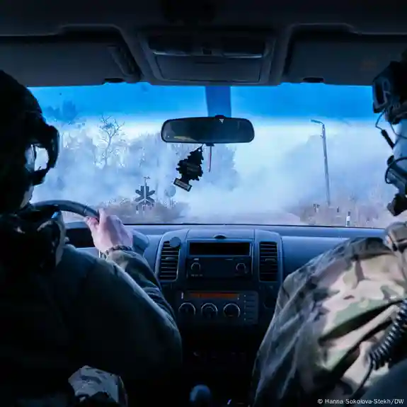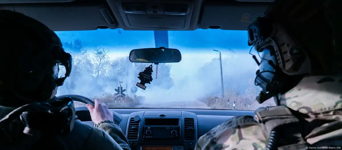 Розовый рассвет плавно становится оранжевым. По обе стороны дороги тлеют поля, загоревшиеся от попаданий то ли дронов, то ли артиллерии. Пока не взошло солнце, мы едем на позицию артиллеристов 15-й бригады Нацгвардии Украины "Кара-Даг", которые отражают наступление России на Купянском направлении.