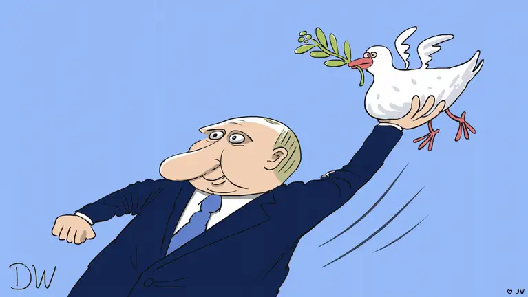 Президент РФ Владимир Путин заявил, что готов к контактам с канцлером Германии Фридрихом Мерцем. Но только если тот позвонит первым. Когда состоится их разговор, и кто будет инициатором? Карикатура DW.