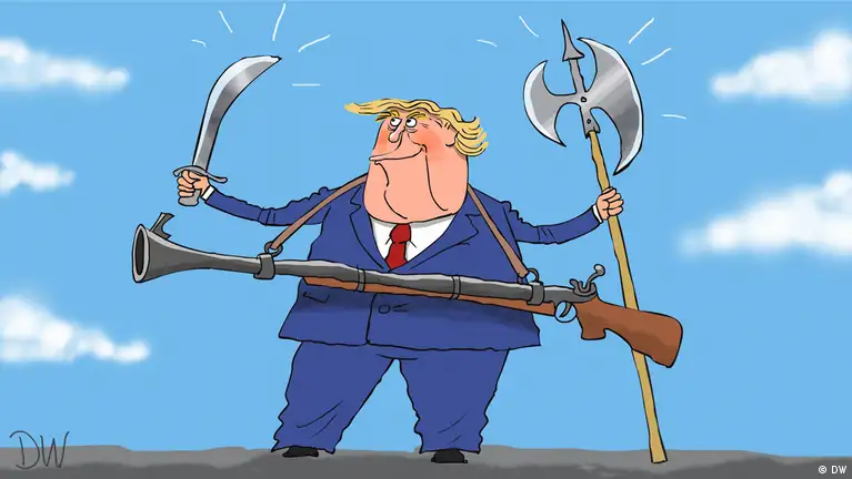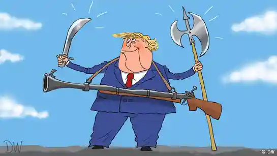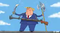 Президент США Дональд Трамп ввел пошлины на китайские товары в размере 145%, власти Китая в ответ обложили американскую продукцию тарифами в 125%. Торговая война двух стран - в карикатуре DW.