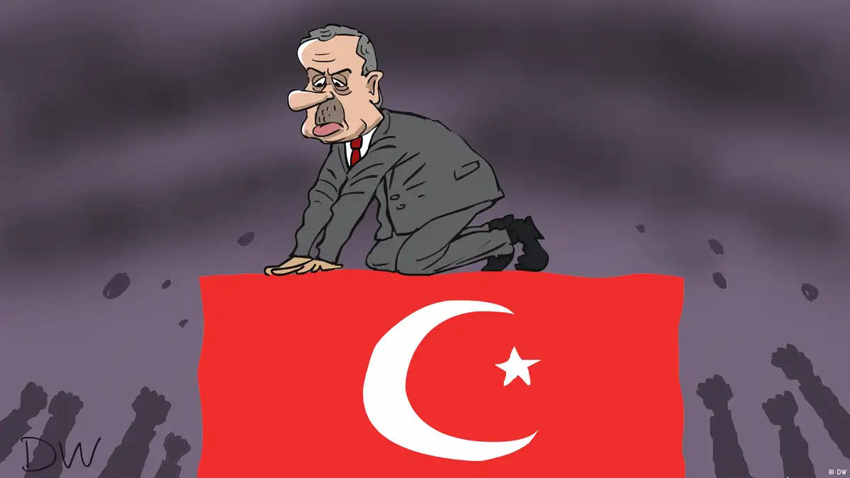 В Турции не утихают протесты против ареста мэра Стамбула Имамоглу. Его называют главным оппонентом президента Эрдогана. Новая революционная ситуация в Турции - в карикатуре DW.
