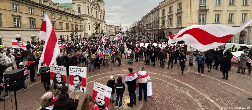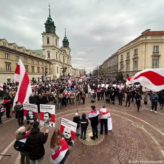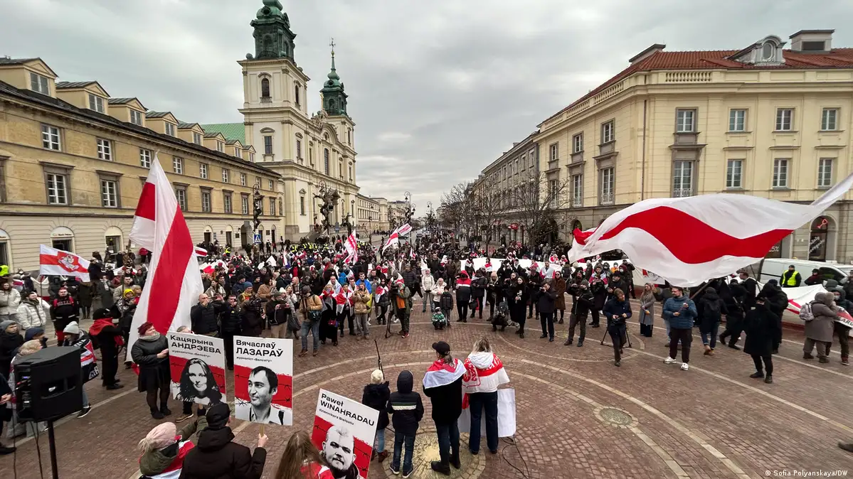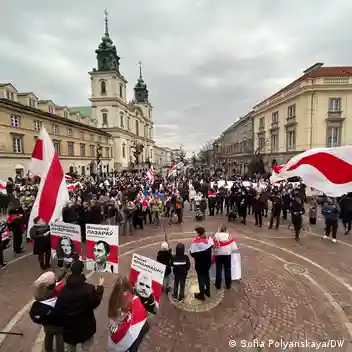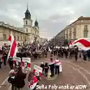 От площади Трех Крестов до Замковой площади в центре Варшавы белорусы пронесли 330-метровый бело-красно-белый флаг. На марш "Не мой выбор" пришли несколько сотен человек, желающих высказаться против выборов, которые сегодня проходят в Беларуси. Как и в 2020 году в белорусских городах, участники марша скандировали "Жыве Беларусь!", "Лукашенко в автозак!", "Верым, можам, пераможам!".