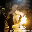 Ajo që ndodhi më herët të dielën është në kundërshtim me deklaratën e Vuçiqit. Qindra video tregojnë të dyja palët - demonstruesit që erdhën për të mbështetur Hrkën dhe njerëzit në kampin e tendave (Ćaciland) - duke hedhur gurë dhe fishekzjarrë. Një tende iu vu edhe flaka.