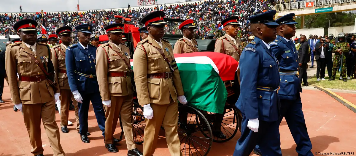 Kwa upande wake Rais wa zamani wa Kenya Uhuru Kenyatta alimtaja marehemu Raila Odinga kuwa mtetezi wa haki za wanyonge, akiwahimiza Wakenya kuendelea kupigania haki na usawa alizopigania marehemu. "Leo hii, tukiwa tunaaga baba yetu Raila Amollo Odinga naomba tuape ya kwamba hatutakubali kama Wakenya, haki za kibinadamu, demokrasia na mambo yale yote Raila alitetea, yarudi nyuma.”