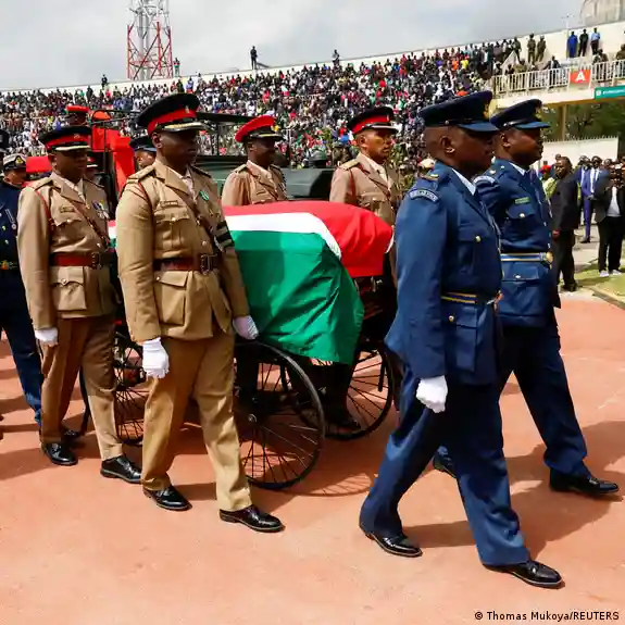 Akihutubia maelfu ya waombolezaji, wakiwemo marais wa Afrika, viongozi wa kimataifa, na Wakenya kutoka pembe zote za nchi, Rais Ruto alitafakari safari yake ndefu ya kisiasa pamoja na Raila akimtaja kuwa mwalimu, mshindani mwenye nguvu na mtu aliyetoa mchango usiosahaulika katika ujenzi wa demokrasia ya Kenya. Alimpongeza Raila kwa kuisaidia serikali kuwadhibiti vijana wa GenZ walipolivamia bunge la taifa mwaka uliopita wakitaka ang'atuke madarakani kutokana na mswada tata wa fedha.