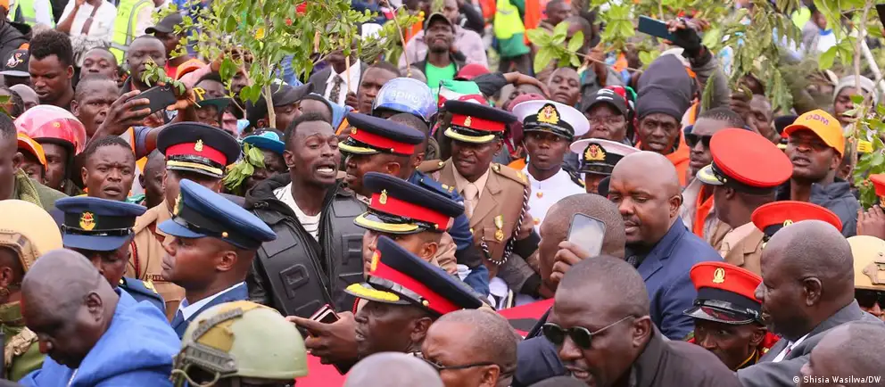 Malefu ya wafuasi walimiminika kwenye uwanja wa majengo ya Bunge na kupanda langoni na kwenye kila sehemu iliyokuwa na viambaza.