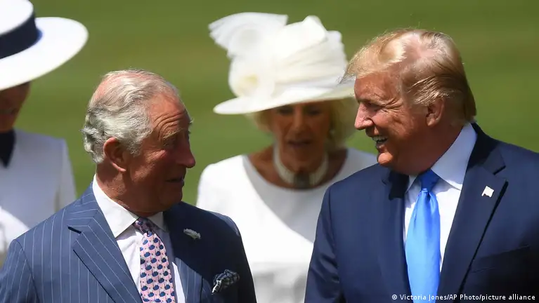 Maelfu ya watu walitarajiwa kujipanga kwenye njia ambazo msafara wa Trump na Mfalme Charles ungelipita wakipaza sauti na kuonesha mabango ya kupinga siasa za Trump ulimwenguni.