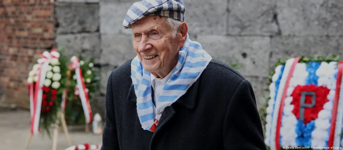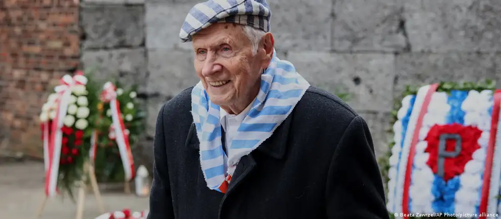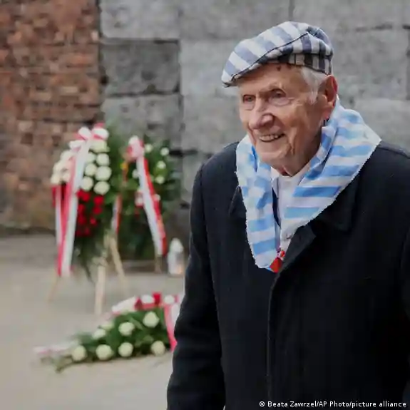 Katika eneo la kumbukumbu la Auschwitz, lililoko kusini mwa Poland iliyokuwa chini ya utawala wa Kijerumani wakati wa Vita Kuu ya Pili ya Dunia, wafungwa wa zamani waliweka mashada ya maua mahali ambapo majeshi ya Kijerumani yaliwaua maelfu ya watu, wengi wao Wapoland.