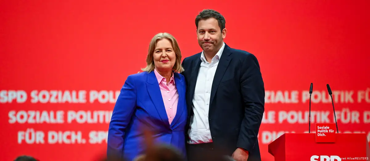 Hristiyan Birlik (CDU/CSU) ile koalisyonun ortağı olan SPD'nin Berlin'de dün başlayan kongresinde eş genel başkan seçimleri yapıldı. Çalışma ve Sosyal İşler Bakanı Bärbel Bas delegelerin yüzde 95'inin, Başbakan Yardımcısı ve Maliye Bakanı Lars Klingbeil ise delegelerin sadece yüzde 64,9'unun oyu ile eş genel başkanlığa seçildi.