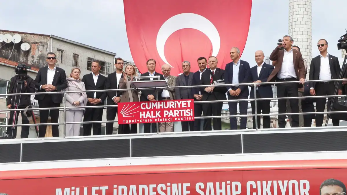 CHP Genel Başkanı Özgür Özel, Çağlayan'daki ifade sürecine eşlik etmek üzere yurtdışı programını yarıda keserek İstanbul'a gelirken, çok sayıda partili de İstanbul Adliyesi önünde toplandı.