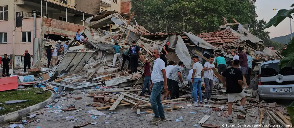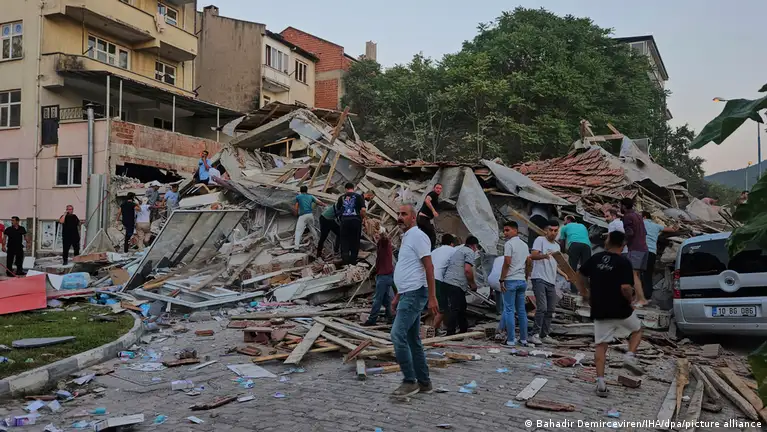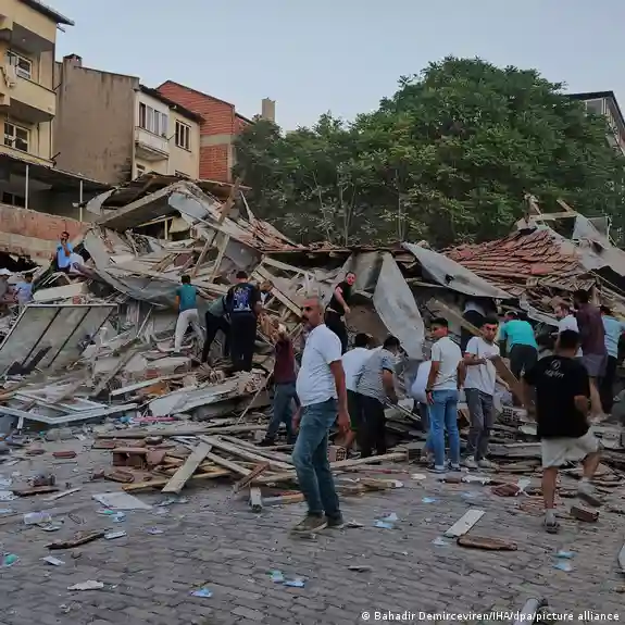 FelaketTürkiye ve deprem 28.10.202528 Ekim 2025Balıkesir Sındırgı merkezli deprem, Türkiye'nin depremle yaşama gerçeğini yeniden hatırlattı. Bağlantıyı kopyalaBalıkesir'de depremin merkez üssü olan Sındırgı'da yıkılan bir bina Fotoğraf: Bahadir Demirceviren/IHA/dpa/picture allianceReklam