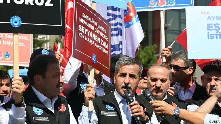 Bakanlığın önüne düdük çalarak gelen sendika üyeleri ise, "Memuruz haklıyız, kazanacağız", "Türkiye sevdamız, ekmek için kavgamız", "İşte memur, işte sendika", "Kamu-Sen alanda emeklinin yanında" sloganları attı.