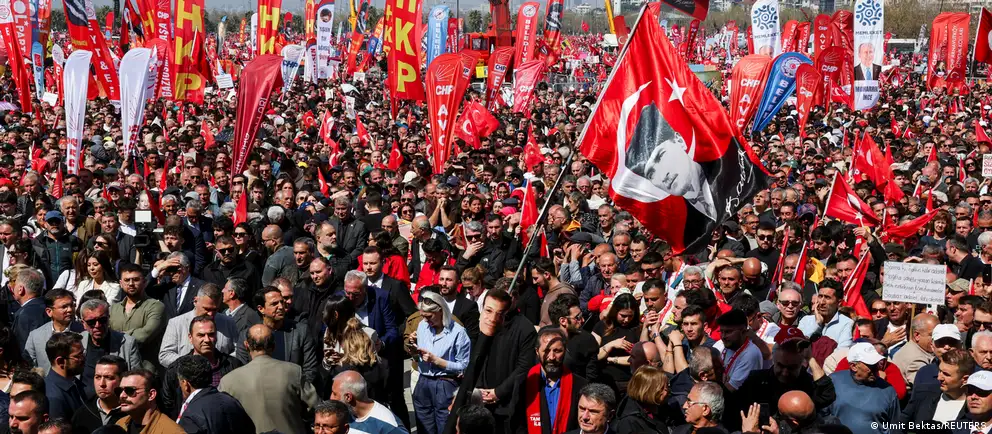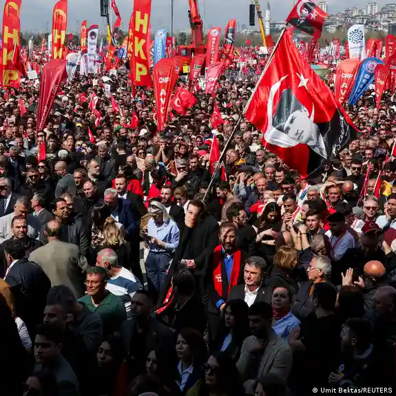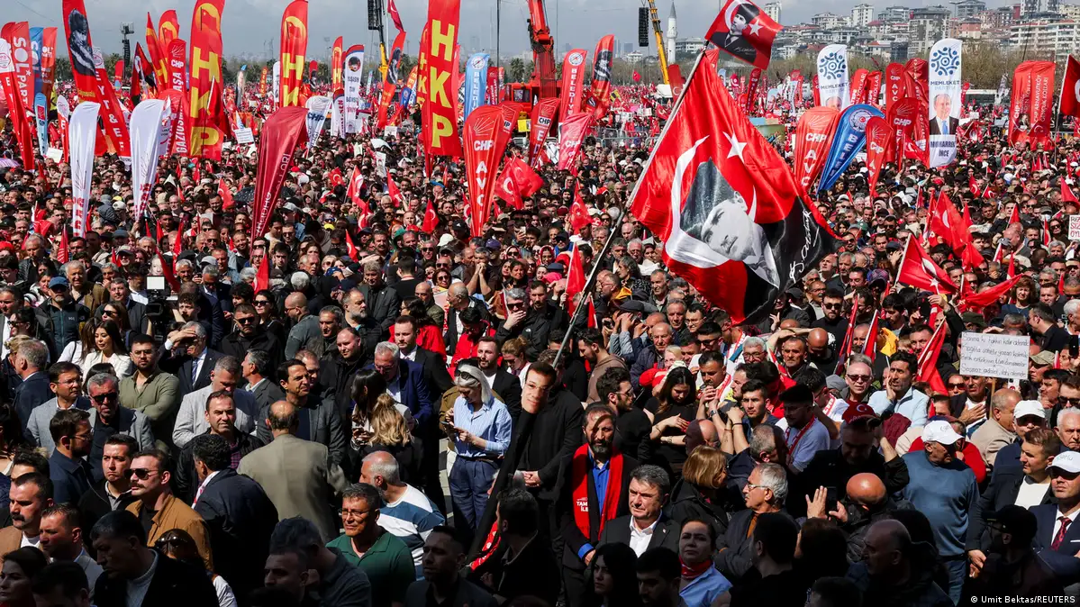 Сотні тисяч людей протестували в Стамбулі в суботу, 29 березня, проти ув'язнення мера міста Екрема Імамоглу, головного потенційного суперника президента Туреччини Реджепа Таїпа Ердогана на наступних президентських виборах. Як зауважує агенція Reuters, ці демонстрації стали найбільшими в Туреччині за понад десять років.