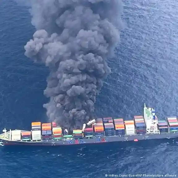 انہوں نے بتایا کہ سنگاپور کے جھنڈے والے جہاز وان ہائی 503 کے عملے کو بچانے کے لیے بھارتی کوسٹ گارڈ نے چار جہاز تعینات کیے۔ یہ جہاز سری لنکا کے کولمبو بندرگاہ سے چل کر ممبئی جارہا تھا کہ جنوبی بھارت کے کیرالہ کے ساحل سے تقریباً 144 کلومیٹر دور اس میں آگ بھڑک اٹھی۔