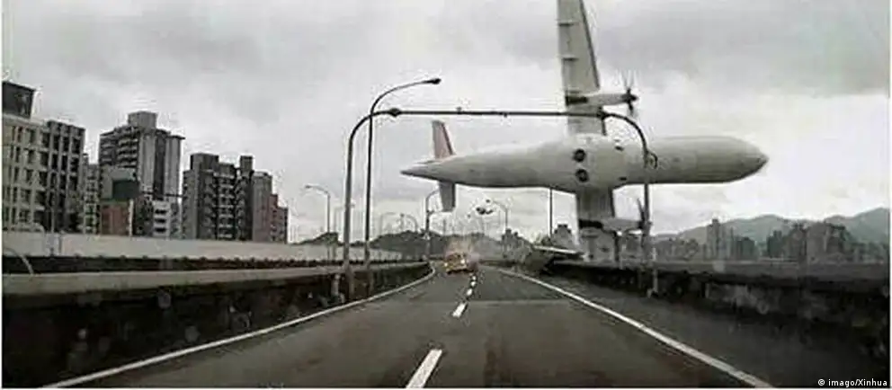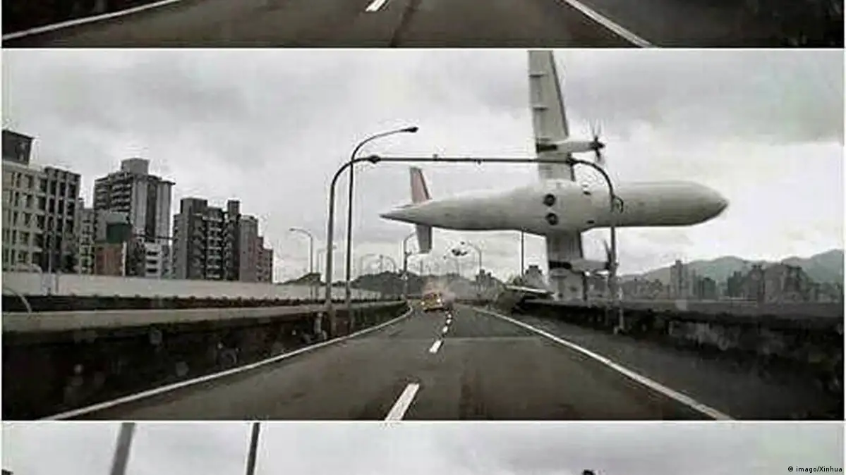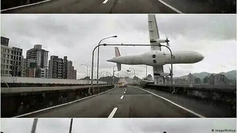 تائیوان کے سرکاری میڈیا کے مطابق یہ طیارہ پرواز کے کچھ ہی دیر بعد دارالحکومت کے مضافات میں دریائے تائی پے میں جا گرا۔ ٹرانس ایشیا کا ATR 72-600 طرز کا یہ طیارہ اندرون ملک پرواز پر کِن مِن نامی جزیرے کی طرف جا رہا تھا۔ جس وقت یہ طیارہ پُل سے ٹکرایا، وہاں ٹریفک رواں دواں تھی۔ طیارے کے پُل سے ٹکرانے کے مناظر ایک گاڑی میں لگے کیمرے نے محفوظ کر لیے تھے اور یہ ویڈیو سوشل میڈیا میں بڑی دلچسپی کے ساتھ دیکھی جا رہی ہے۔