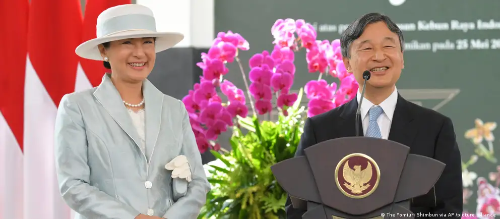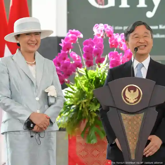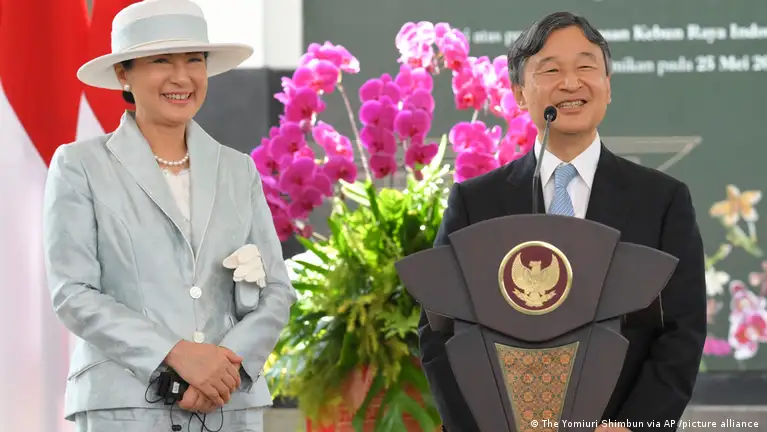 جاپان کے موجودہ شہنشاہ ناروہیٹو اور ان کی اہلیہ، شہزادی ماساکو کی 2023ء میں انڈونیشیا کے ایک سرکاری دورے کے دوران لی گئی ایک تصویرتصویر: The Yomiuri Shimbun via AP /picture alliance