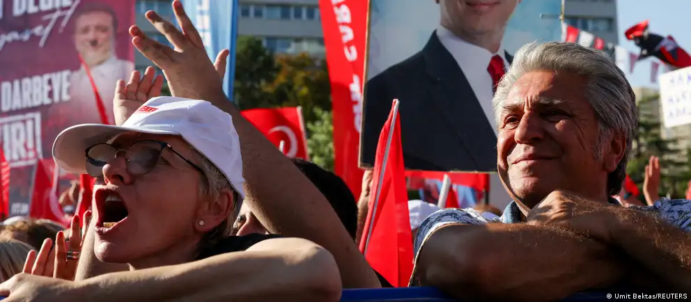 ترکی کے دارالحکومت انقرہ میں اتوار کے روز دسیوں ہزار افراد نے ایک اہم عدالتی فیصلے سے قبل احتجاج کیا، جس میں مرکزی اپوزیشن جماعت کے سربراہ پر انتخابات میں حصہ لینے پر پابندی عائد کیے جانے کا خدشہ ہے۔