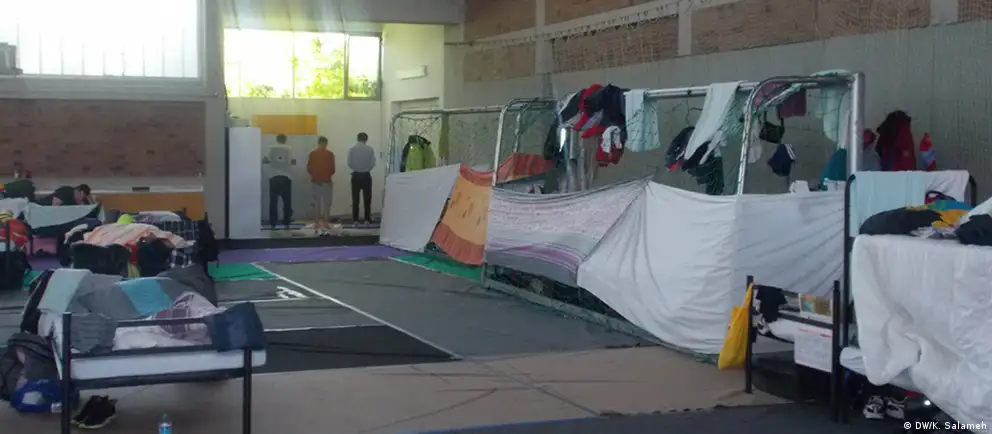 ’’ہم مسائل میں اضافہ کرنا نہیں چاہتے بلکہ ہم انہیں حل کرنا چاہتے ہیں‘‘ یہ کہنا ہے شامی مہاجر محمد کا۔ وہ مزید کہتے ہیں، ’’ہم نے وہ جگہ دیکھی ہے، جہاں ہمیں منتقل کیا جا رہا ہے لیکن ہم یہیں رہنا چاہتے ہیں۔‘‘ یہ پچاس مرد بوخم کے ایک اسپورٹس ہال میں اس وقت سے رہ رہے ہیں، جب یہ جرمنی آئے تھے۔ اس ہال کی دیواروں پر بورڈ نصب ہیں، جن پر تحریر ہے’’ہم بطور انسان اپنے حقوق کا مطالبہ کرتے ہیں‘‘۔ یہ ہال ایک مقامی اسکول کا حصہ ہے اور اسے فوری طور پر تزئین و آرائش کی ضرورت بھی ہے۔ ان پناہ گزینوں کی وجہ سے وقفے کے دوران بچوں کو اس ہال کی بجائے باہر گراؤنڈ میں کھیلنا پڑتا ہے۔ اس دوران کئی پناہ گزین مرد ان بچوں کو دیکھتے ہیں اور اسپورٹس ہال کا دروازہ بھی کھلا رہتا ہے اور اسے بچوں کے لیے کوئی اچھا نظارہ نہیں کہا جا سکتا۔