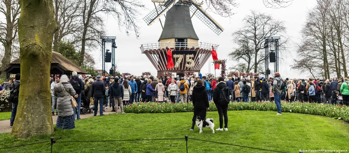 مشہور زمانہ ولندیزی ٹیولپ گارڈن 75 ویں بار دنیا بھر کے شائقین کے لیے رنگا رنگ پھولوں سے سج گیا ہے۔ جمعرات سے شروع ہونے والی یہ نمائش لاکھوں کی تعداد میں شائقین کو رنگ و بو سے آراستہ اس گارڈن کی طرف کھینچے لا رہی ہے۔