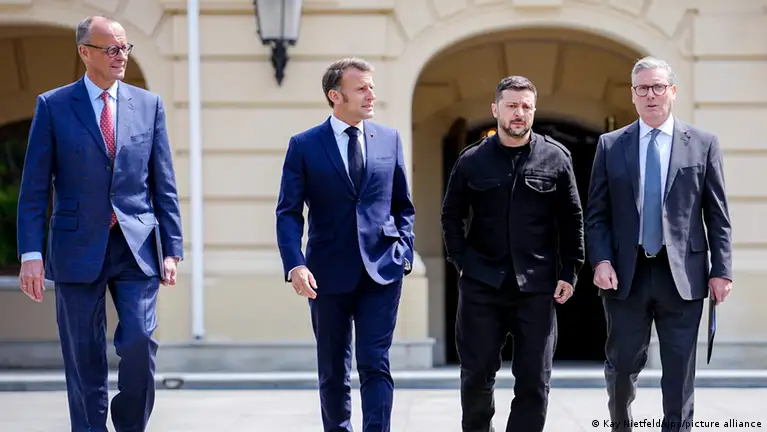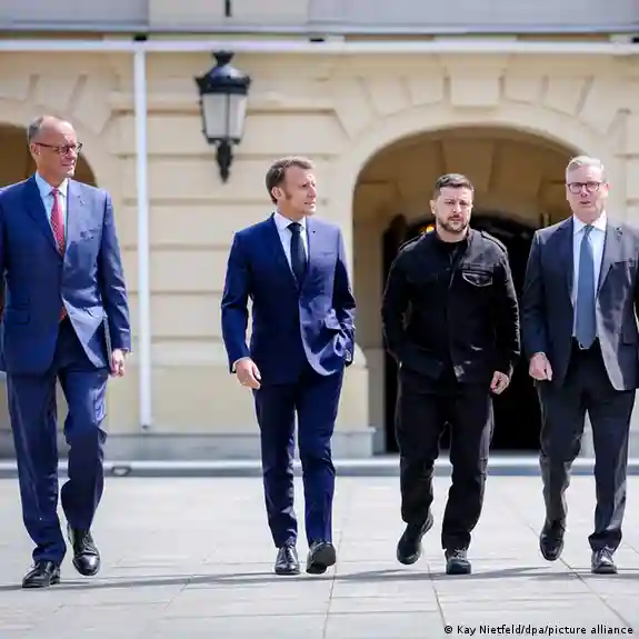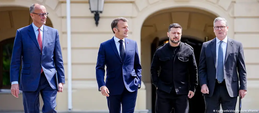 برطانوی وزیرِ اعظم سر کیئر اسٹارمر کی دعوت پر لندن میں یوکرینی صدر وولودیمیر زیلینسکی پیر کو فرانسیسی صدر ایمانوئل ماکروں اور جرمن چانسلر فریڈرش میرس سے پیر کے روز لندن میں ملاقات کر رہے ہیں۔ ٹین ڈاؤننگ اسٹریٹ نے اتوار کی شب کہا کہ ان کی ملاقات میں تقریباً چار سال سے جاری جنگ کے خاتمے کے لیے مذاکرات میں پیدا ہونے والی رکاوٹیں دور کرنے کے طریقوں پر غور کیا جائے گا۔