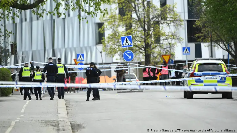 سویڈش میڈیا کا کہنا ہے کہ عینی شاہدین نے شہر کے وسط میں واقع ایک ہیئر سیلون میں کئی گولیاں چلنے کی آوازیں سنیں۔تصویر: Fredrik Sandberg/TT News Agency/REUTERS